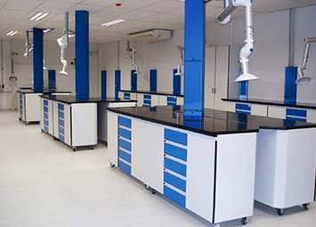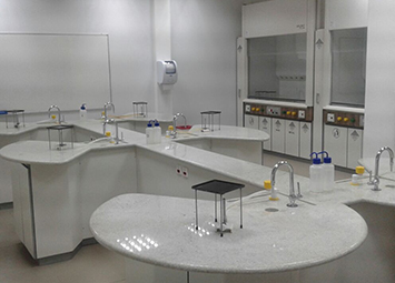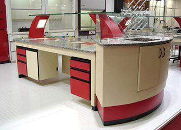 Bancadas e capelas especiais projetadas para atender os laboratórios educacionais para atender grupos de 4 a 5 pessoas para salas de 25 a 50 alunos. Privilegiando a visualização da aula expositiva através de multimídia ou lousa móvel.