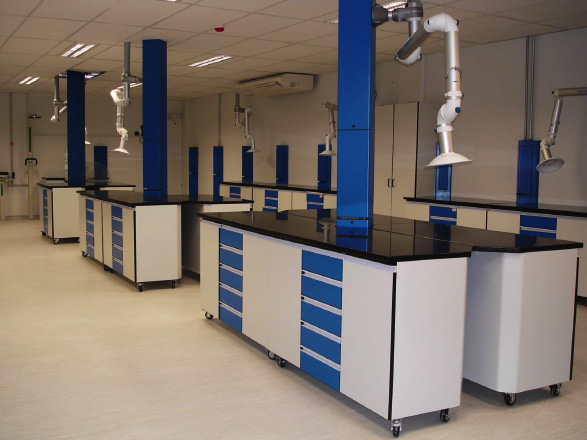 - Utilidades podem ser montadas em torres ao longo das paredes e ao centro do laboratório, sendo que todas elas são facilmente removíveis, incrementando a facilidade de mudança de lay-out e instalação de utilidades e sistemas de exaustão localizados
